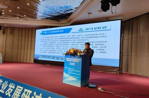 AFA公司应邀参加了本次会议并在会议上布展,向参会代表展示了C型耐磨球阀的优势特点和核心技术,公司董事长谢正泽在会议上作了《C型耐磨球阀在化工严酷工况的应用》主题报告,受到了与会代表的一致好评。